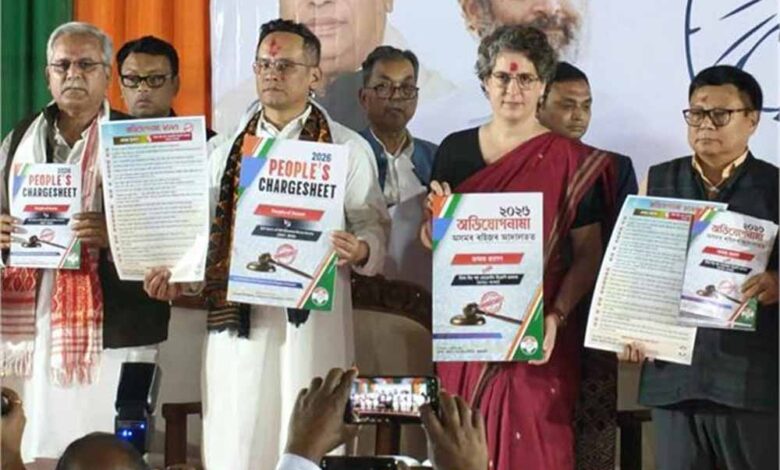 विपक्षी पार्टी ने विधानसभा चुनावों से पहले यह ‘आरोपपत्र’ जारी किया। कांग्रेस ने आरोप लगाया कि एक दशक के शासनकाल के बावजूद भाजपा सरकार छह आदिवासी समुदायों को अनुसूचित जनजाति का दर्जा दिलवाने और चाय बागान श्रमिकों की दैनिक मजदूरी बढ़ाकर 351 रुपये करने के अपने वादे को पूरे करने में विफल रही।